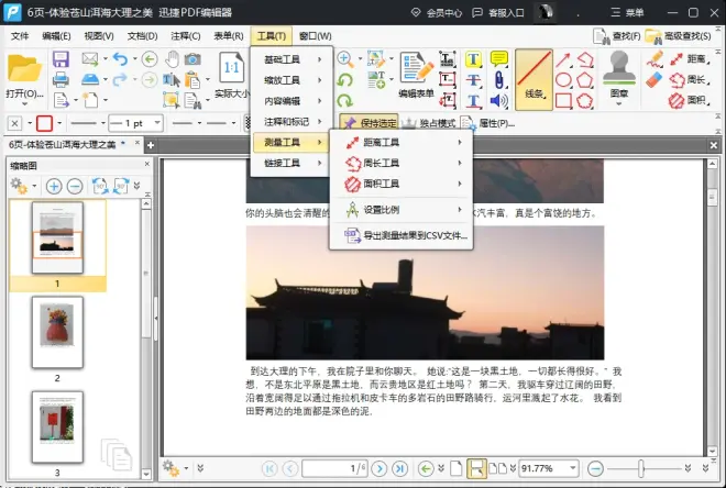 迅捷PDF编辑器是一款功能强大的PDF编辑工具,它支持对PDF文件进行各种操作,如添加、删除、修改、移动和复制文本、图像等。除此之外,还提供了许多实用的功能,如测量工具就是其中一个特色功能,为办公人群提供了更多的选择。