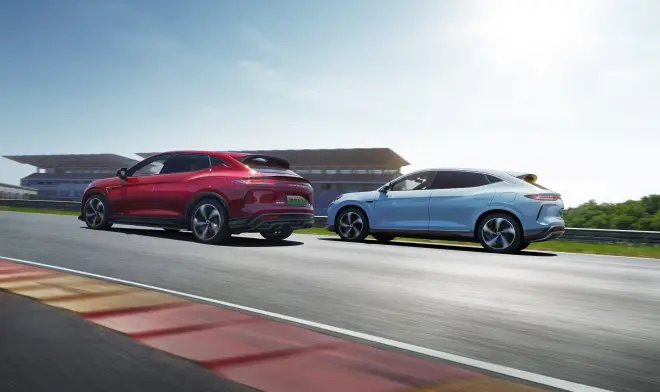 腾势N7一共拥有后驱、四驱两种动力形式的六个版本的不同车型,均基于e平台3.0腾势升级版打造,配备有空气悬挂,采用了全球首款量产的八合一电动力总成,最大功率230kW,配合上160kW的前电机,可拥有最大功率为390kW的动力性能,零百加速3.9s,续航里程根据版本的不同分别为702km和630km。
