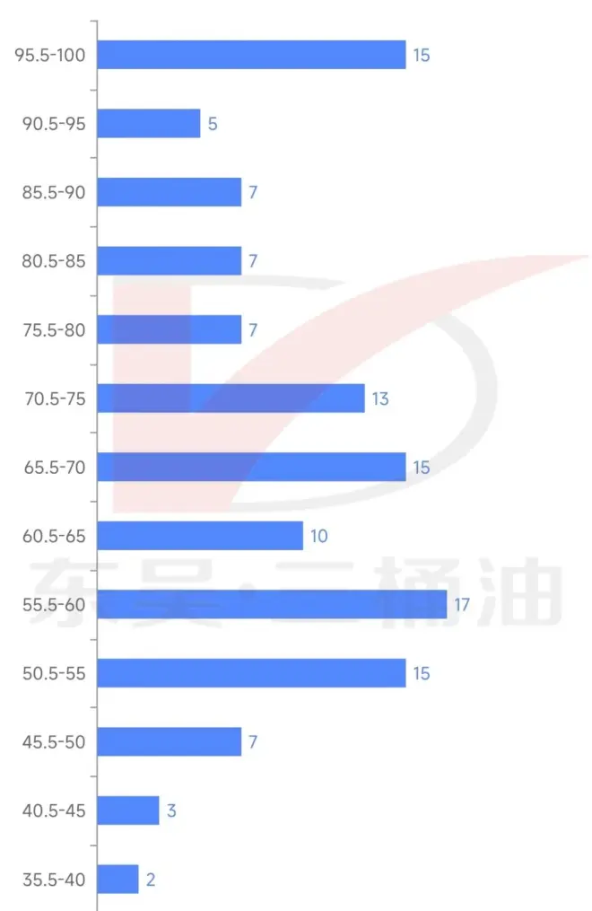 此次招聘人数少,参与分数反馈的同学不多共有129人,数据显示55-75分数段人数最多,占到54%,以下数据信息仅供参考。