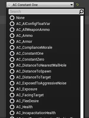 此外,我们系统中还有个不算啥创新,但确实其他效用AI系统中都没见过的设计。阈值门系统。他作为决策因子的辅助设计而存在。阈值门和决策因子类似,但输出并非浮点数,而是布尔类型的是或否,开放或关闭。其目的是控制决策时是否考虑某种行为。只有阈值都满足时,才会去考虑这个行为。其中一种用法就是实现冷却机制,用常规的决策因子和函数难以实现这种二进制(两状态)的判断。即冷却时间是否结束?这种冷却判断需要在考虑决策行为之前执行。在没有这种设计之前,有些时候AI会在没有外界刺激的情况下就自己投降,或者干一些我们不希望的事,但通过调试其分数权重,又确实符合函数。阈值门让我们多了一种调控AI的方式,(能够限制AI的行为边界)让他们不至于干一些离谱事,便于游戏设计师设计游戏。