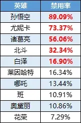 【禁用率前五】孙悟空、尤妮卡、诸葛亮、北斗、白泽