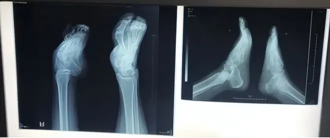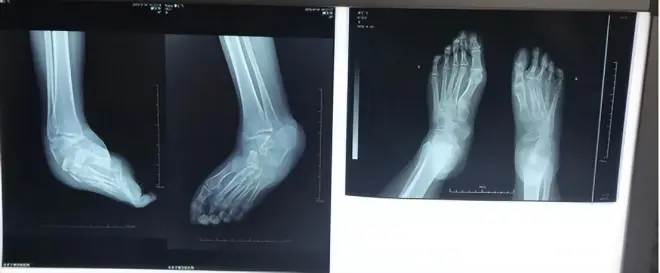 通过胡霞医生的精心治疗,大大改善了足踝畸形,实现了独立行走的梦想。今年夏天来复查,X光显示她右脚的形态明显改善,变得更加清晰明了,骨块完整无损,没有进行任何切割或内固定手术,关节也恢复了原本的位置。