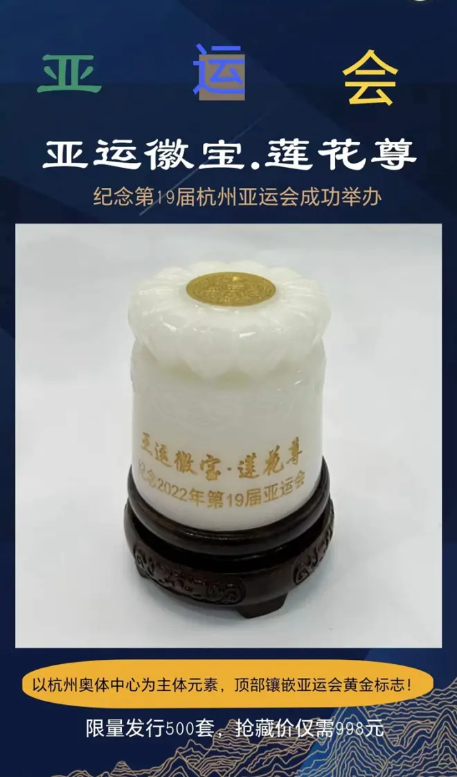 亚运徽宝莲花尊藏一送二白玉材质黄金镶嵌
