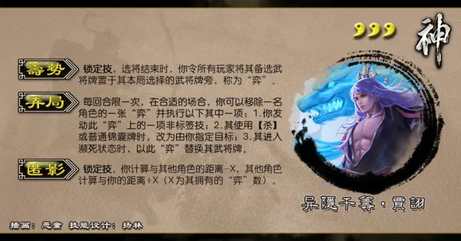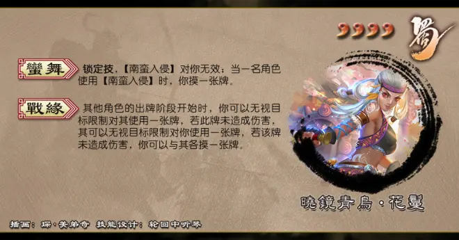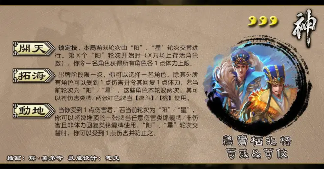 武将人物介绍和技能还有游戏牌展示完毕,其中还有对游戏牌新增的效果,但是大梦是个只爱玩国战,身份和设计都不懂的菜狗。
