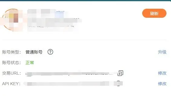 4、绑定账号后,根据提示填写对应的交易URL以及API KEY。