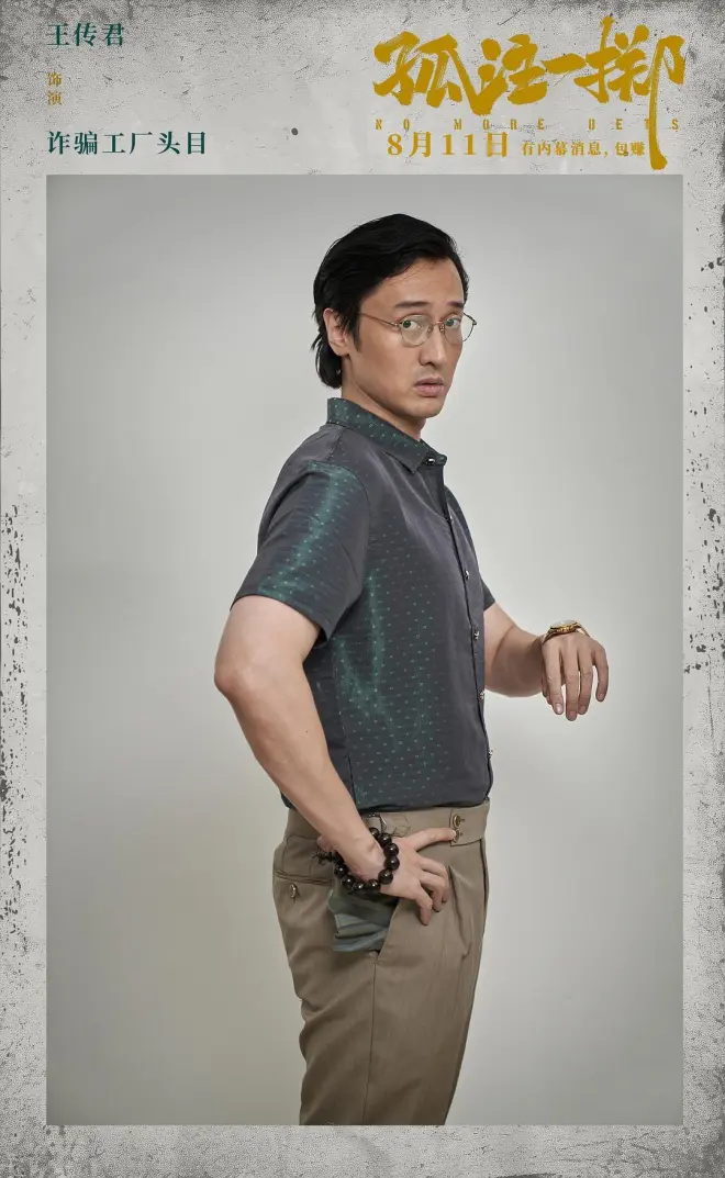 如今,人们提到王传君,早已不再是《爱情公寓》里的关谷神奇,而是《罗曼蒂克消亡史》中的马仔、《我不是药神》里的吕受益,以及如今《孤注一掷》中的陆秉坤。