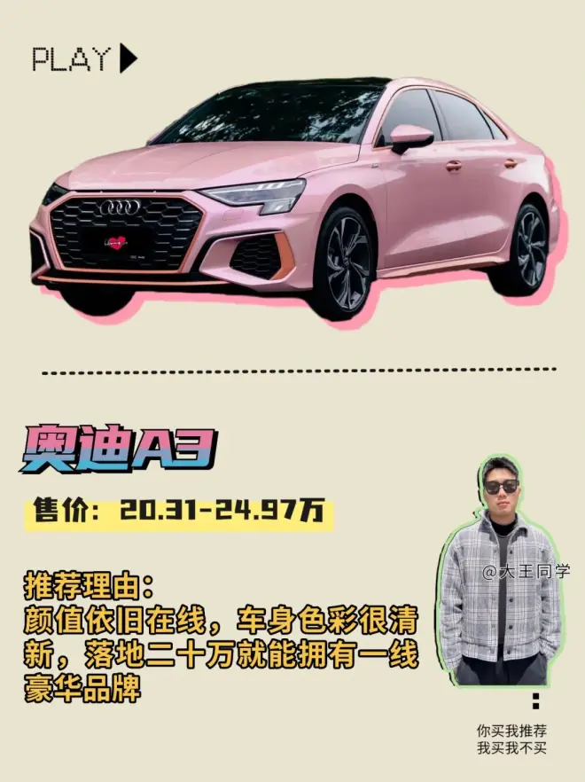 售价:20.31-24.97万推荐理由:颜值依旧在线,车身色彩很清新,落地二十万就能拥有一线豪华品牌