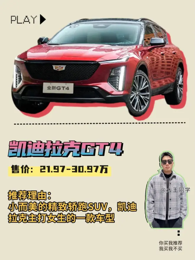 凯迪拉克GT4售价:21.97-30.97万推荐理由:小而美的精致轿跑SUV,凯迪拉克主打女生的一款车型