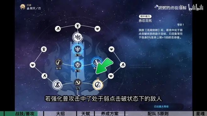 - 其他行迹中:额外能力——吞忍百死,可以不点;其他两个被动尽量要点。
