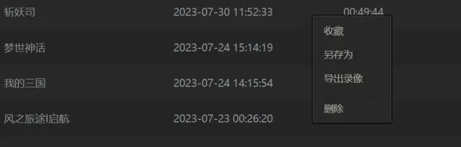在此处我们可找到我们之前所有游戏的相关录像,右击打开选项菜单,此处选择另存为,不要选择导出录像,导出录像给到的文件格式并不符合要求。