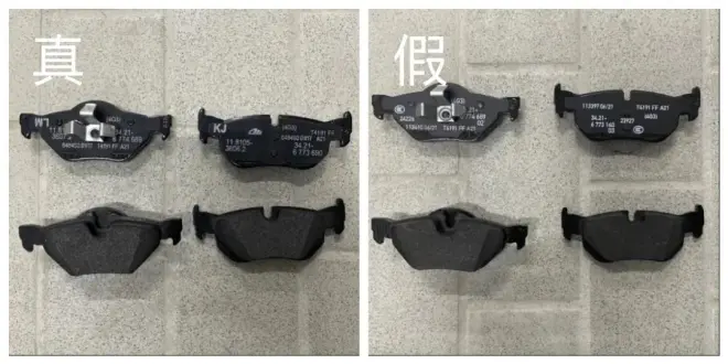 非原厂:无国标摩擦系数;表面光滑,金属成分明显,制动力不足;仅胶水黏贴无铆接二次固定;只有车型无制造日期,无法精准配合合适使用车型。