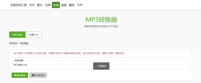 4.提交之后我们需要等的文件在云端转换,转换成功后我们可以下载转换好的MP3文件。