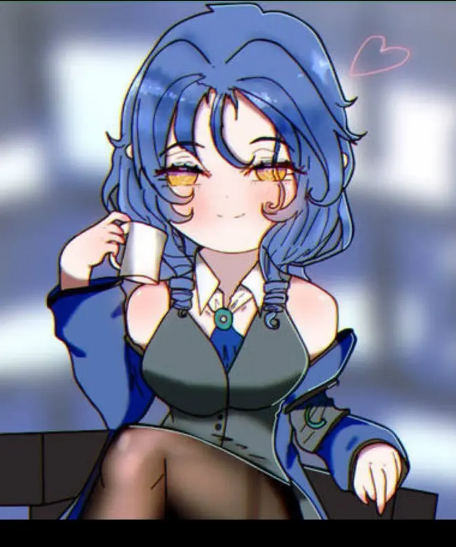 当主管醒了后发现自己被捆在了地上站在自己面前的是个蓝头发拿着咖啡穿着黑丝脸上挂着笑容女孩子