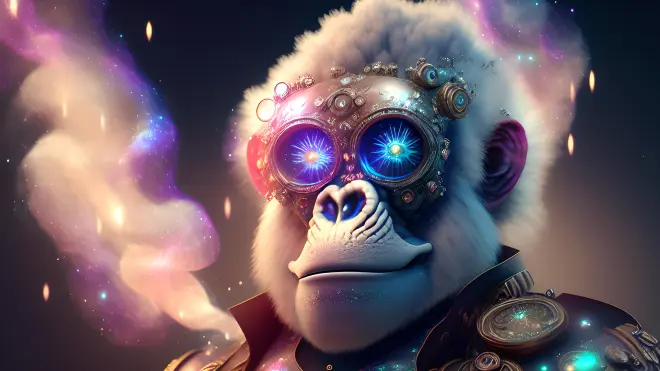 prompt:galaxies, spirals, space, nebulae, stars, smoke, iridescent, intricate detail, in the shape of a steampunk white gorilla, octane render, hyper realistic , octane render, 8k, uplight ,dreamlikeart