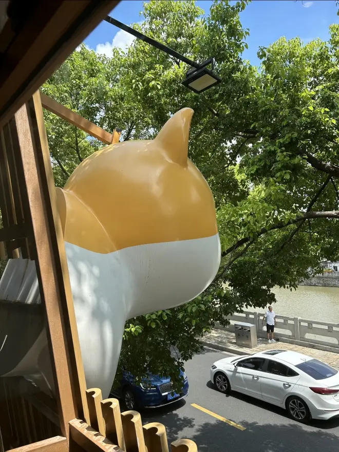 今个儿的安排,是和金大能耐以及小张一起吃饭。作为无收入的准大学生,我就只带了张嘴去吃,她们一个请烤肉,一个请奶茶 去的是三堡街的一家网红餐厅,店门口的猫猫头真的很有辨识度。中午人不多,但店里的环境很不错,充斥着猫猫元素