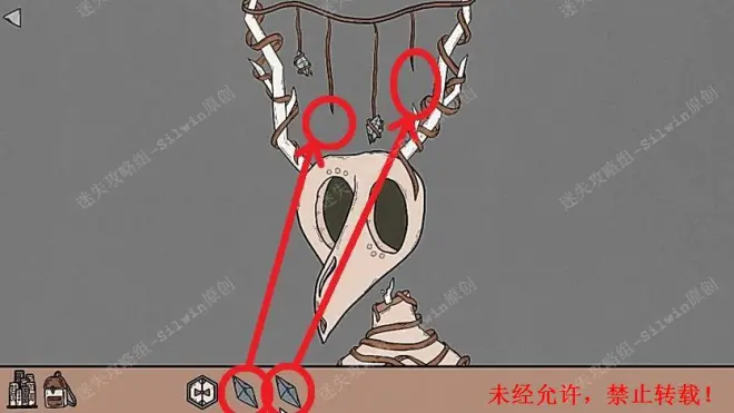 28.将两颗水晶拖到绳子末端,从手上得到六边形部件。28-1、28-2