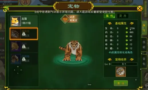 在新手升级的路上避免玩家过于孤单,游戏会在一定等级之后赠送一只宠物。在接下来的过程中陪伴玩家战斗,也是为了更快捷方便的提升自己的等级。首先,宠物的品质是不一样的分为普通,极品,史诗和传说四个级别。随着品质的提高宠物的属性也会越来越强大,目前游戏中一共有四种宠物供玩家选择。
