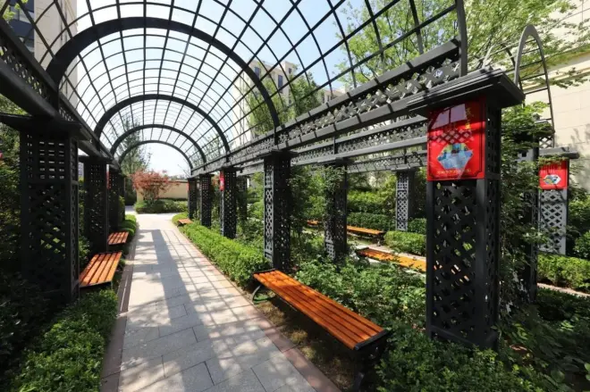 浞河公馆的景观打造分为五大广场、五重绿化以及全龄化景观园林。项目通过一环、两轴、多节点的布局将各楼栋之间的绿化相互连接,形成功能齐全、四季长青、环境优美的绿色公园社区。园区内还设有儿童乐园、健身乐园、颐养花园,可为社区老中青幼不同年龄段的居者提供各自喜好的共享空间,打造全龄化的景观配套。