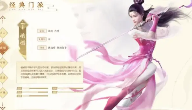 该职业主要定位于辅助和治疗,擅长为队友提供治疗和团队辅助效果,同时也具备一定的远程攻击和神秘的伤害能力。金顶绵掌、月落西山等技能不仅能对敌人造成致命的控制效果,而且清心普善咒更是能够为队友提供高效的治疗效果,是小编最推荐大家在新天龙八部手游里面选择的门派职业了。
