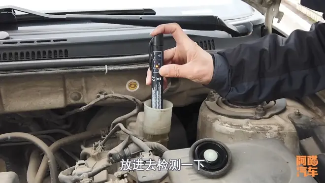 检查刹车油。使用刹车油含水率检测笔,放入刹车油内检测含水率,如果没有超标,刹车油可以不用换。