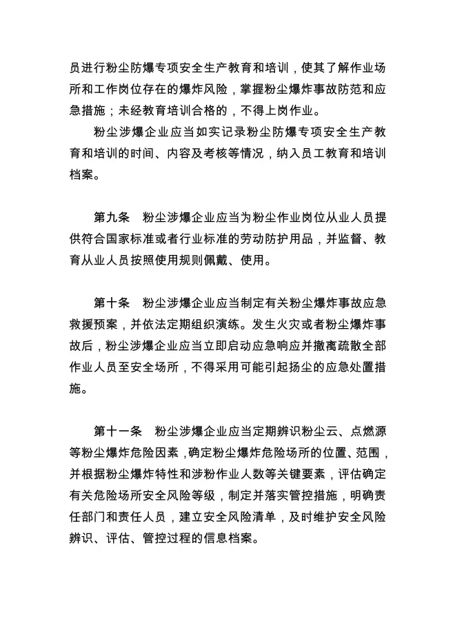 工贸企业粉尘防爆安全规定