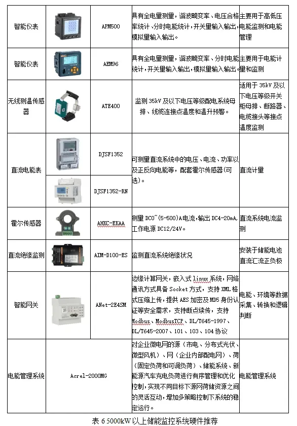 在5000kW以下储能系统中,安科瑞提供的二次设备推荐如表5所示。