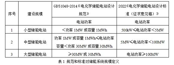 另外针对电化学储能电站的规模分类,规范和标准也不同。