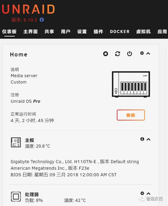 当然,存储数据方式的易用性并不是今天的重点,UNRIAD除了磁盘模式独具特色之外,在功能上更加优秀:它支持Docker和虚拟机系统。这样一来,我们就可以通过UNRIAD作为载体,安装对应需求的系统软件实现各种功能。
