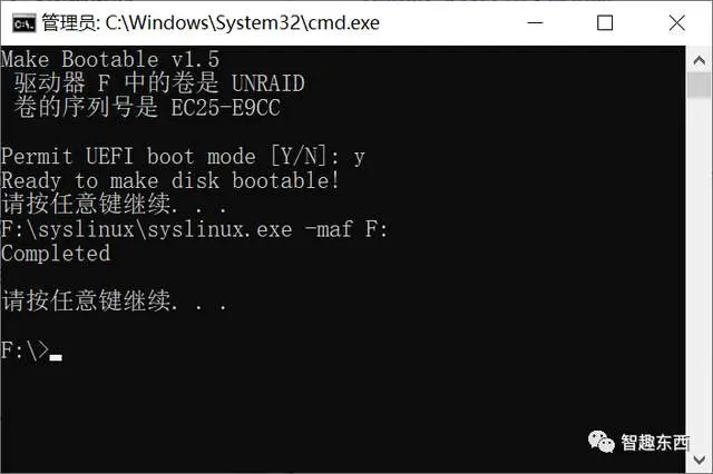 在make_bootable的命令提示符窗口中,会提示是否设置UEFI启动(根据自己的电脑是否支持来决定),如果是UEFI启动,根据提示按下键盘的Y键继续执导执行即可。