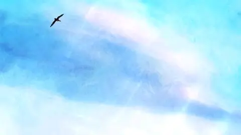 晴空万里。 春日的天空一望无际。 抬眼望去,嫩叶的残影之间,蔚蓝的天空中飘过一线云朵。 一只大雁从天边飞过。 翅膀一闪,转眼便消失在云间。
