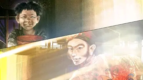 小鱼是晁盖率领梁山泊军攻打曾头市时作为内应的居民的子女。后来,陷入曾头市的梁山泊头领们趁乱分别逃走,幸存的居民非死即伤。阮小二瞥见了小鱼的腿上有一处烧伤的痕迹。一定是那时受的伤。 “活着就好,我一直很想你。” 小鱼使劲擦了擦鼻子。 “妈妈带着我,逃到了隆德府,在那里投靠了一个在田虎手下工作的叔叔,可是,那个叫田虎的家伙只顾着打仗,妈妈死在了战乱里,叔叔的家也被一把火烧成灰烬,我从此成了一个乞丐……” 燕青远远地听着少年们的声音,面无表情地仰望着挂在天花板的灯笼。 如今,宋国的北境,契丹人统治的辽国虎视眈眈,国内则因田虎、王庆、方腊等怀有野心的男人发动的叛乱而日益分崩离析。现在,连孩子都要“投身”梁山泊中。 尽管如此,天子们却仍然因为能够装饰如此豪华的灯笼而感到高兴。他们不知道的是,只要有这一盏灯笼,就可以让北京所有的乞丐温暖地度过一整个冬天。 燕青的目光,停留在孤零零地站在聚义厅一角的盲眼少年身上。此时的盲眼少年,被遗忘在喧嚣的角落里,不知所措。 燕青走近失明的少年。那张像被遗弃的小狗一样的脸上,浮现出了笑容。 “小狗?” 『通臂猿』侯健从燕青身旁穿过,来到少年面前。