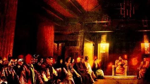银台金阙夕沉沉 独宿相思在翰林 三五夜中新月色 二千里外故人心 “白乐天在宫中思念‘故人’,不是在元宵,而是在中秋圆月之夜。” 柴进看着为自己斟酒的燕青,自言自语道。 “我也想在银台月下,思念‘故人’。” 原本是一首怀念朋友的诗。但柴进口中的“故人”一词,却带着微妙的抑扬顿挫。 燕青瞥了柴进一眼。『浪子』燕青是梁山泊中最擅长察言观色的人。燕青一言不发地离开房间,不久带着一个中年男子走了回来。 男人身穿绿色战袍,是在天子身边担任护卫的近卫兵,被称为——观察。 “主人,我带来了王观察大人。” 男人是在酒楼外的街道上被燕青叫住的。燕青自称是男人老友的仆从,主人在酒楼里等待已久——受邀前来的男人,望着眼前这位似乎从未见过的贵人,不禁吃了一惊。 王观察胆怯地向柴进问道。 “听说我是您的旧相识,不知您是?” 柴进看了燕青一眼,悠然将手中的玉杯递给男子。 “您忘了老熟人吗?那么……请您慢慢回忆吧。” 燕青也巧妙地向男人劝酒。大概只喝了四五杯,王观察就安详地睡着了。原来,酒中掺有『笑面虎』朱富特制的安眠药。 燕青脱下王观察的衣服,掸开上面的灰尘,递给柴进。 “这身绿袍和金簪,是朝廷赐给侍臣们的,只要有了这些东西,不用需要任何许可,就能随意进出皇宫。” “所以——我很喜欢你。” 柴进微微一笑。 “您一个人没关系吗?” 燕青向柴进投去确认的目光。柴进点了点头。燕青也露出如同顽皮的孩子一般的笑容。 “所以,我也很喜欢你。” 这位来自梁山泊的达官贵人,很像曾经的卢俊义。 ———————————————————— 柴进换好衣服,离开酒楼,从东华门进入皇城。 皇城的内部是一排宫殿。城墙很高,石阶一望无际。城市内的喧嚣无法到达这里,简直是另一个世界。 柴进穿过华丽的建筑,向皇宫深处走去。不久,柴进来到了皇城内部的花园。花园里四处都陈列着南方奇岩太湖石。栏杆上雕刻着精致图案的回廊,一直通向花园深处。整个皇宫空无一人。 万里路长在 六年身始归 所经多旧馆 大半主人非 柴进低声沉吟着,穿过黄昏中悠长的回廊。 有一种很怀念的感觉。柴进的心情很平静。如果世宗没有夭折,如果赵匡胤没有篡位,周国得以延续的话——这里,现在就是他的“家”了。 但是,柴进的幻想被一个粗鄙的声音打破了。 “喂!” 原来是柴进的吟唱引来了路过的值班士兵。士兵叫住柴进,注视着他端正的面容。 “这张脸我没见过。” 与其说可疑——不如说是没有这么漂亮的士兵。 “你是第几班的,检查一下入宫许可。” 士兵伸出手来,柴进缓缓将手伸进怀里。 “快点!” 话还没说完,伸出手的士兵便瞪大眼睛,晕倒在石板路上。不知从哪里出现了一个漆黑的影子,把士兵绑缚起来,扔进了一旁的空房间。 工作结束后,影子赶回柴进面前,跪伏在地。 “带路吧,『走无常』。” 当代孟尝君柴进手下,掌握着一支异士军团——“鸡狗”。『走无常』作为其中一员,将柴进引向了宫殿的更深处。 除了柴进之外,没有人知道『走无常』真正的样子。即使听说过『走无常』名号的人,也仅仅只知道在拥有各种特技的柴进手下当中,有一个绰号叫做『走无常』的人,他是一个神出鬼没的间谍。这个男人曾奉柴进之命,潜入宫城之中。 柴进在『走无常』的带领下,经过皇帝起居的紫宸殿,转到了文德殿,但是,宫殿的每扇门都上了锁,无法进入。不一会儿,柴进跟随『走无常』,来到了睿思殿中一间挂着画框的雅致房间。