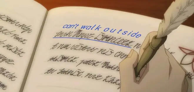 在第八话伊蕾娜的日记中,通过“can't walk outside”,求出k