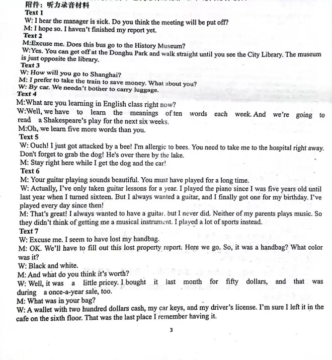 听力答案:1-5 CBACA 6- 10 ACABA 11- 15 CABBC 16-20 BCBAA