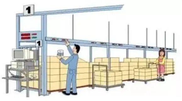 DAS播种式拣货,也是依靠电子标签系统,根据电子标签系统,提示的信息进行拣选货品。