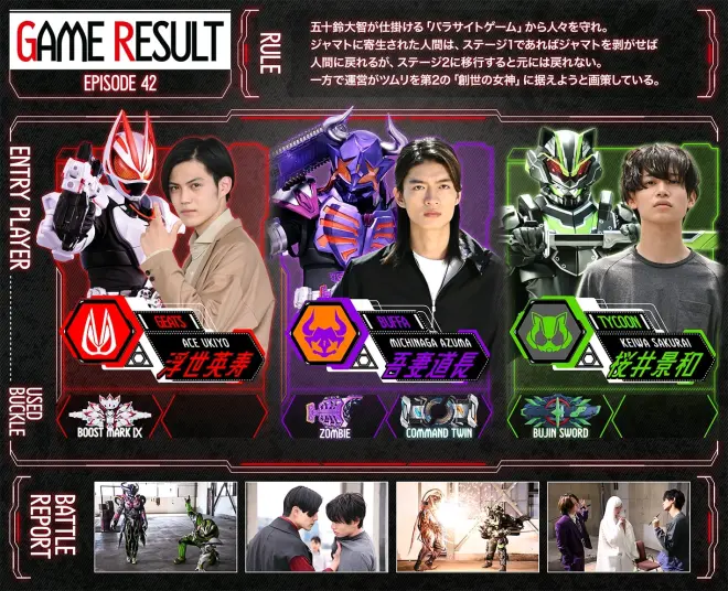 高桥悠也: 感谢收看假面骑士Geats的各位! Tycoon………… 佐藤瑠雅: GeatsEP42 面具下隐藏悲伤眼泪的战士 这就是我的世界。 今后的景和,不要错过