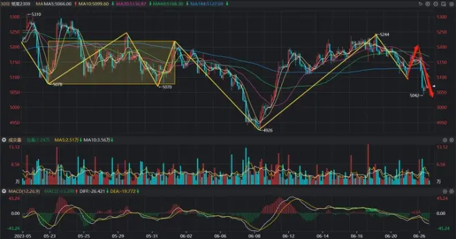 棉花今日收锤子阳线,日线等待这一笔下结束,可以考虑介入,内部结构上,30分钟破位后的一笔下,目测是未见明显背驰的,那么意味着反弹构建中枢后还会继续下探,需要耐心等待。再看5分钟图,夜盘关注是否还有3卖;