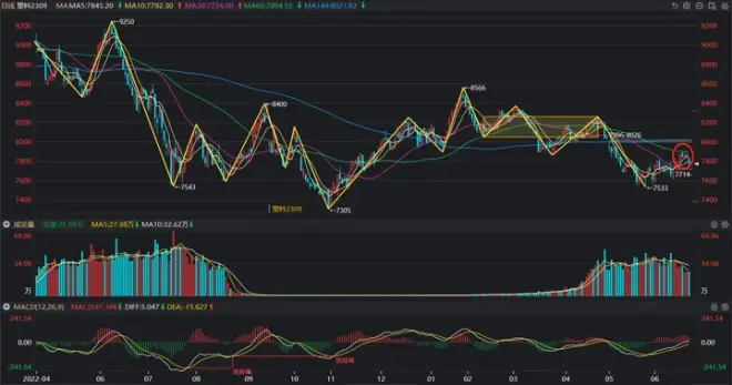 纸浆今日收阴,日线一笔下还未结束,下方分型始终未确认,内部结构上,30分钟破位结构未出现,走势上存在空头继续下探的可能。再看5分钟图,夜盘如果下破红圈,30分钟红色剧本确认,那么30分钟就继续以中枢震荡对待;