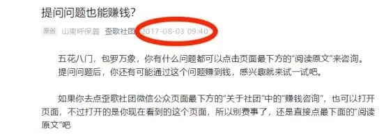 其中在2017年8月3日,正值“知识付费”的风口,我就在我们歪歌社团的公众号上,发起了一个“向我提问”的活动。