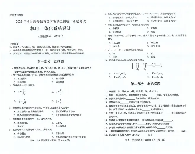 2023年4月自考《02245机电一体化系统设计》真题和评分参考的评论 (共