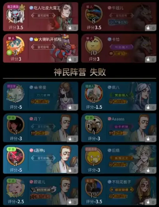 鱼是狼人,狼人获胜,好人接近于3离线,只是拖到了有效局。