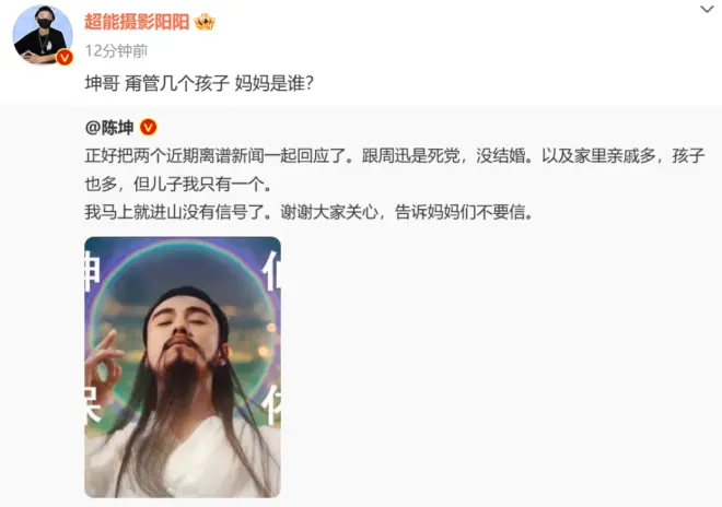 八卦媒体这次爆料的这个瓜真的是太离谱了,而且可能还触及了陈坤的底线,不然陈坤怎么会那么快就出来辟谣?