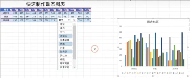这样的话,当我们点击姓名,这个图表就会自动发生变化