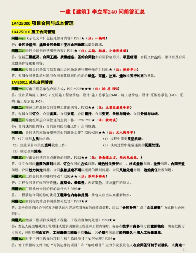 一建李立军建筑240句考点几乎覆盖了建筑所有的基础考点,背完直接做真题,就会发现一建建筑翻来覆去考的考点只有这240句话,我就是背2遍考点,开始做历年真题卷,及时查补缺漏,而且这240句考点,每个考点还总结成了速记口诀,直接背关键词在考试的时候也能得分,超实用