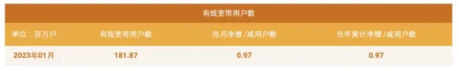 中国移动的宽带业务起步于收购过来的铁通,早期口碑不佳,但依托着移动强劲的经济和技术实力,发展极为迅猛。中国移动公布的 2023 年 1 月运营数据显示,它的宽带用户总数已经达到了 2.74 亿,净增 252.9 万。而口碑一向不错的中国电信,宽带用户总数为 1.81 亿,1 月净增了 97 万户。