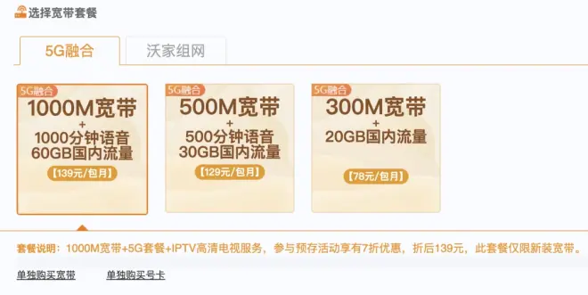 同时,运营商在宽带营销方面,越来越热衷于捆绑销售,即把有线宽带和手机 5G 号卡打包成融合套餐,单宽带产品被大幅减少或变相涨价。运营商采取这种销售策略,无非是为了提升用户粘性、增加用户退出的成本,同时也能让 5G 方面的用户数据更加好看。但对普通用户来说,选择权被削弱了。