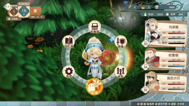 该版本的游戏机制是消耗时间,其中离开炼金工房再回去会消耗一日时间,外出路上和每次的采集和战斗都会消耗一日时限,这里还会随机捡到采集物或遇到敌人,而在炼金工坊内进行调和也会随着材料用具消耗不同的日期,看似简洁且高自由的游玩实际上则需要很好的时间管理,还要注意传闻和特定日期发生的活动,很难一周目就收集完全。