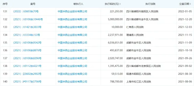 查询企查查发现,华西股份仅在2021年就有多达23条被法院执行的记录。