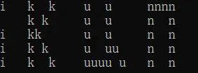 printf("i k k u u nnnn\n k k u u n n\ni kk u u n n\ni k k u uu n n\ni k k uuuu u n n");