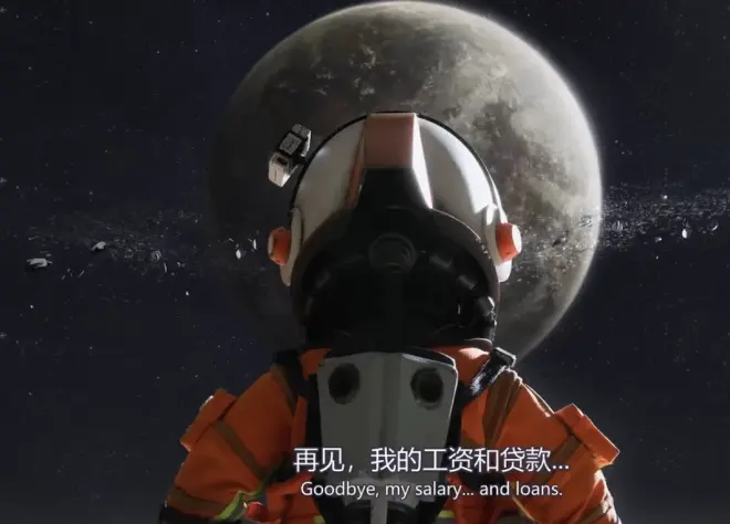 最后一个故事《玉兔》算得上是一个自我救赎的故事。主人公王小顺是银河环卫队的一名太空清洁工,结果却在行驶中被太空垃圾击中了飞船,被迫降落在月球。飞船损坏、通讯失联,此时的王小顺觉得自己也像一件被遗弃的垃圾。现实中的王小顺一事无成,生活中倍感压力,绝望中他想到了自杀。而就在此时,他遇到了被遗弃在月球上的机器人“玉兔”。玉兔就像一个永远都不知道什么是绝望的乐天派,它认真而善良,用单薄的身体,拆掉自己的“基地”零件,帮王小顺修好了飞船。等浑浑噩噩的王小顺重新醒来时,发现玉兔已经奄奄一息了。百感交集的王小顺重新燃起了生活的希望,他唤醒玉兔,带着它踏上回家的征途。